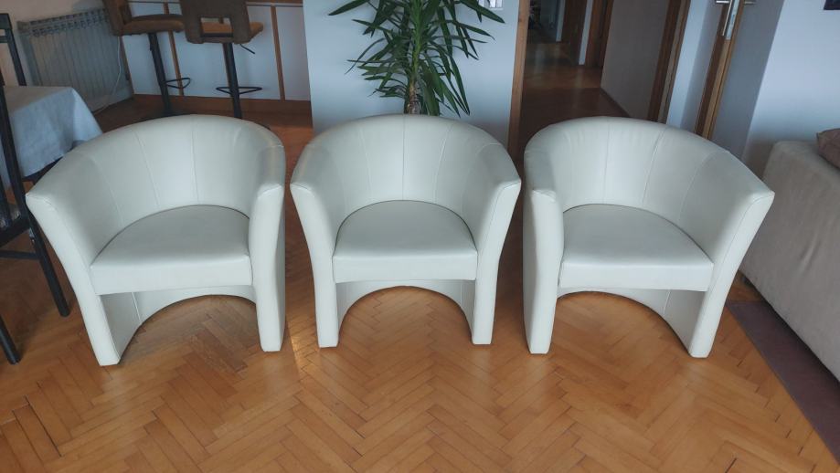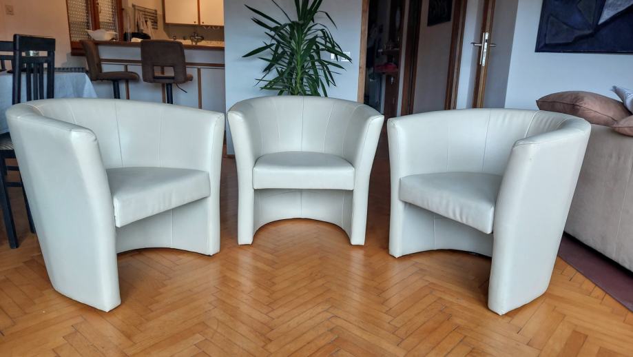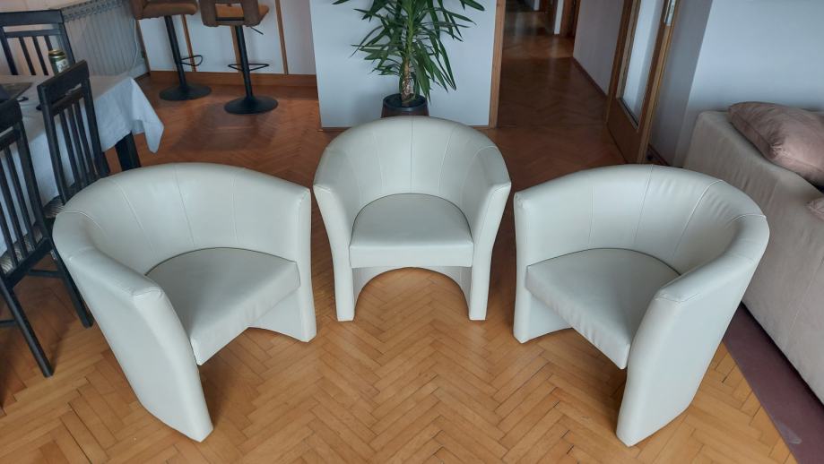 Prodajem fotelje bež boje, rabljene, ali u odličnom stanju! Dimenzije su 70 x 70 x 60 cm (visina/širina/dubina). Cijena po komadu je 35 €, ako uzimate sve tri cijena je 90 €.