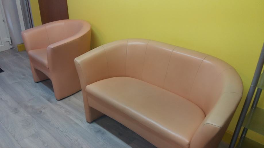 Prodajem kvalitetnu fotelju i 2 dvosjeda od eko kože, boja breskve, vrlo malo korištene.