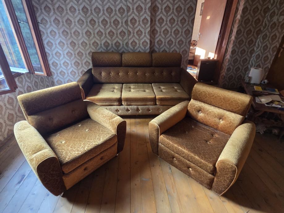 2 fotelje i trosjed na razvlačenje