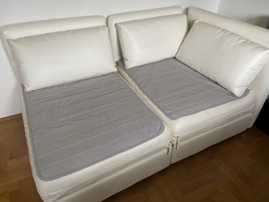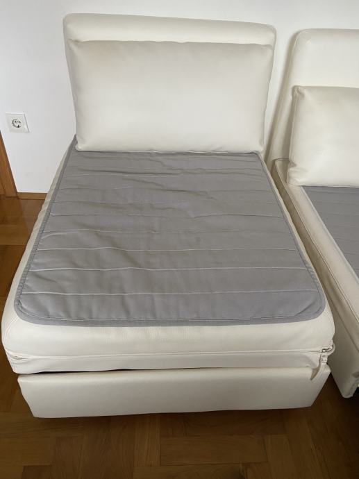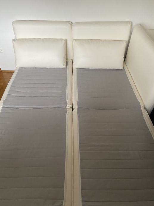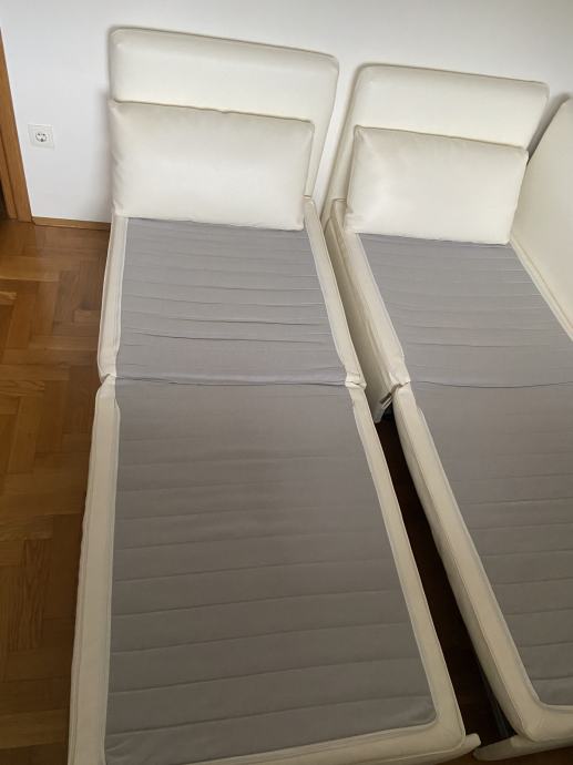 Prodajem IKEA fotelje na razvlačenje sastavljene od dvije zasebne fotelje koje se jednostavno spajaju u krevet, idealno za svakodnevno spavanje ili kao kvalitetno rješenje za goste. Kupljeno u IKEA trgovini prije 3 godine, korišteno pažijivo i u odličnom stanju- bez ikakvih oštecenja, mrlja ili neugodnih mirisa. Presvlake su čiste i uredne, mehanizam za razvlačenje potpuno ispravan. Madrac od pjene pruža udobnu površinu za spavanje dimenzija 190×80 kao ležaj u rasklopljenom stanju (dimenzije jedne fotelje). Prodaje se u kompletu (2 fotelje). Idealno rješenje za stanove i manje