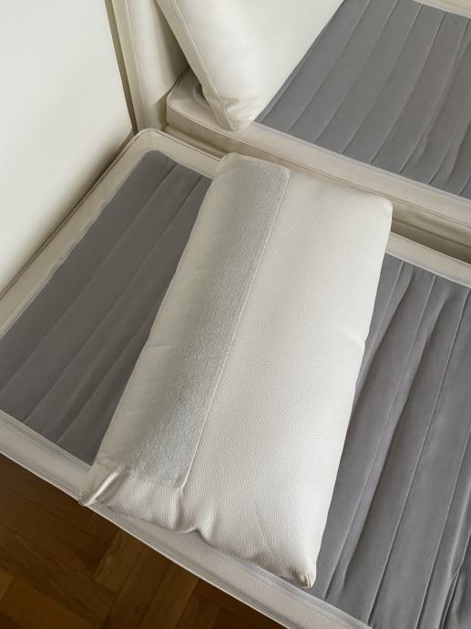 prostore, apartmane i najam te gostinjsku sobu ili dnevni boravak. Fotelje su bijele boje, u cijenu su uključeni originalni jastuci te zaštitni prekrivači sive boje. Fotelje imaju čvrstu letvičastu podnicu (drvene letvice).