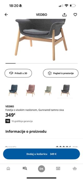 VEDBO fotelju sa visokim naslonom, Gunnared tamno siva. Korištena nekoliko mjeseci kao dekoracija i dječjoj sobi!