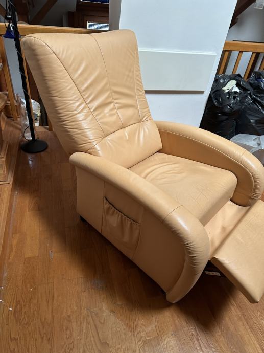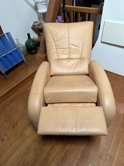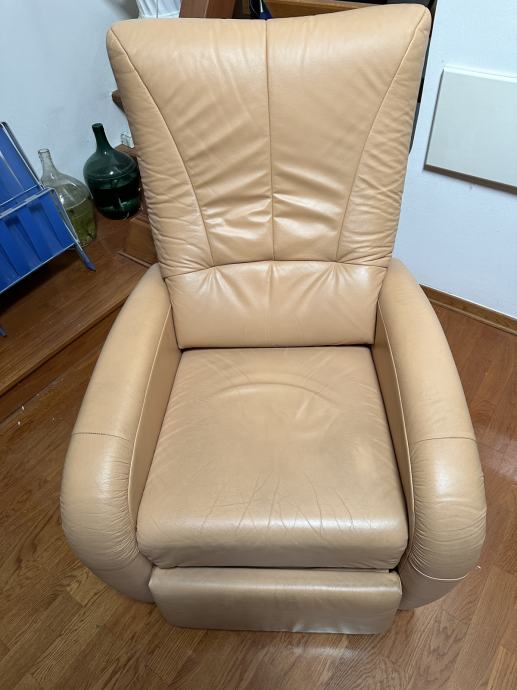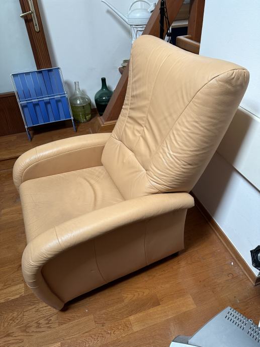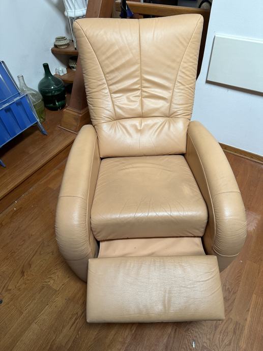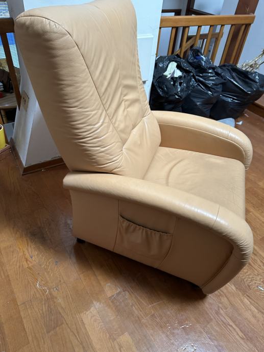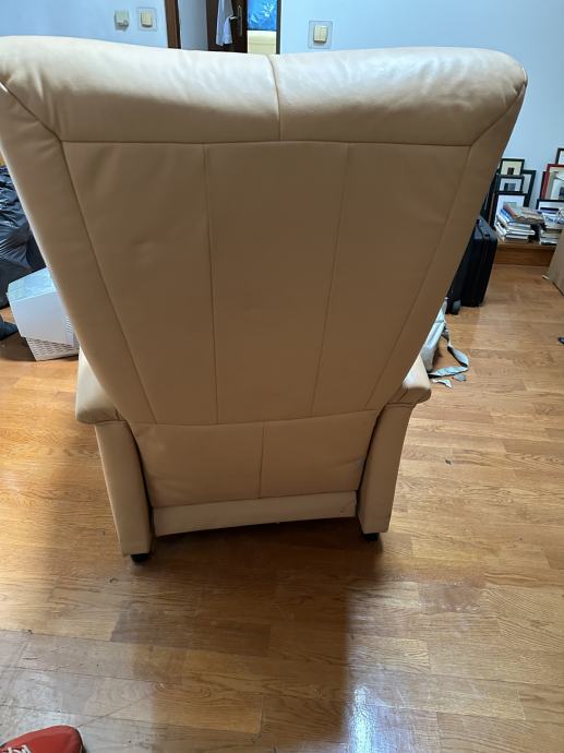 Kožna Fotelja - Bež Boje - Uključuje više mogućnosti položaja - kupljena u Lesnini Zagreb.
