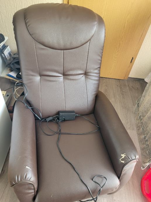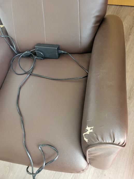 Prodajem kožnu fotelju sa el.funkcijom(daljinskim)gore/dole u dobrom stanju.Sve se vidi na slikama.Prodajem za 40 eura