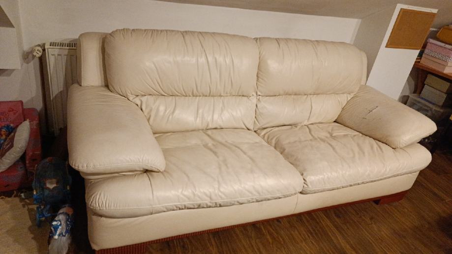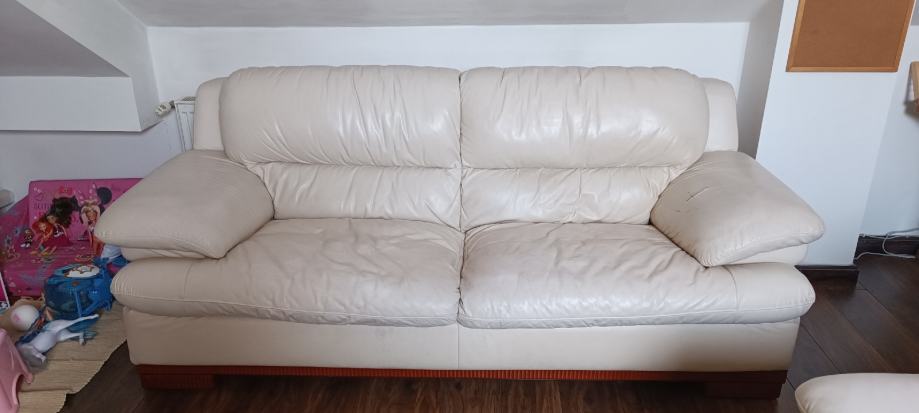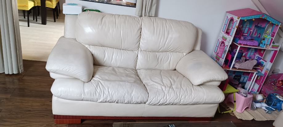 Prava koža dvosjed korišteni vidi se i na slikama ali ništa rasklimano. Dimenzije dvosjeda: širina 170cm, dubina 98cm, visina 90cm