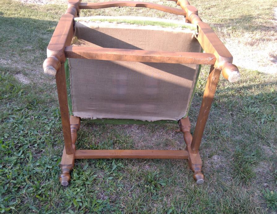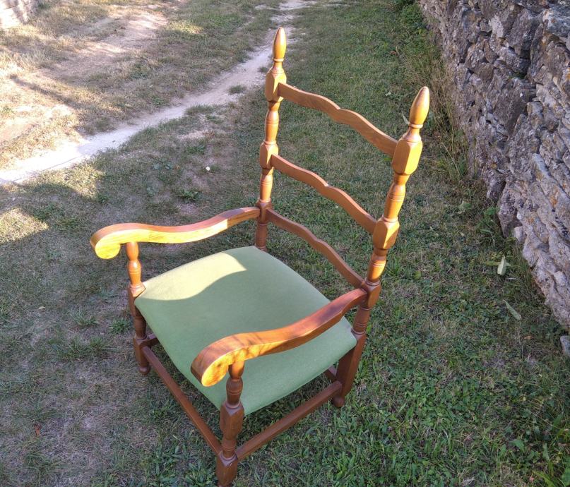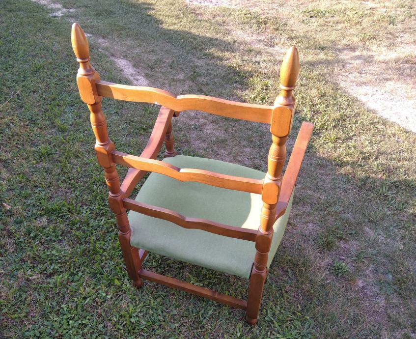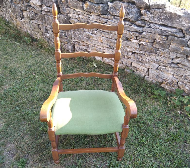 Prodajem jednu drvenu stolicu. Sjedalo je od zelene tkanine.