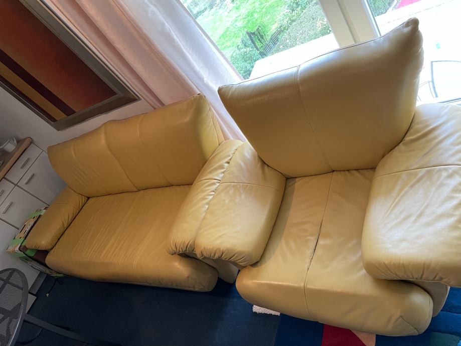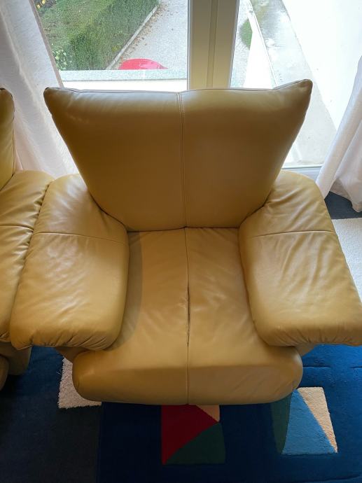 Prodajem dva trosjeda i jedan jednosjed od kože. Rabljeno, jedino oštećenje je ovo što je popucalo po šavu, ali to se lako da popraviti. 1000kn.