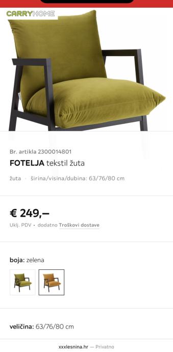 Fotelja kupljena prije 2 tjedna. Nova novcata u savršenom stanju.
