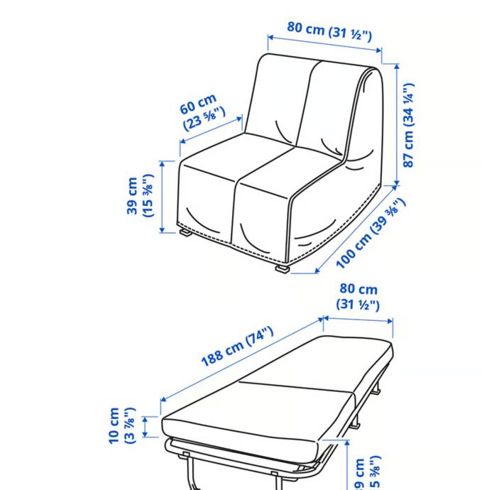 LYCKSELE fotelja na razvlačenje koja se lako preobražava u krevet