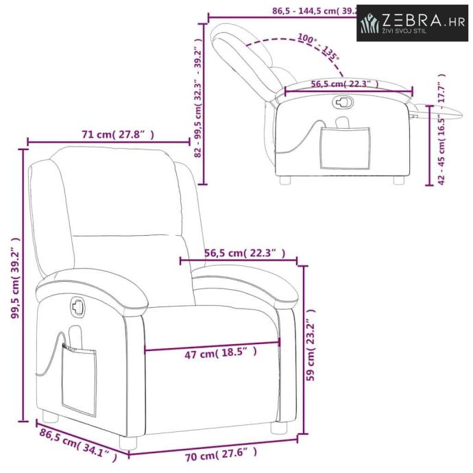 Dimenzije kod ležanja: 71 x 144,5 x 82 cm (Š x D x V)