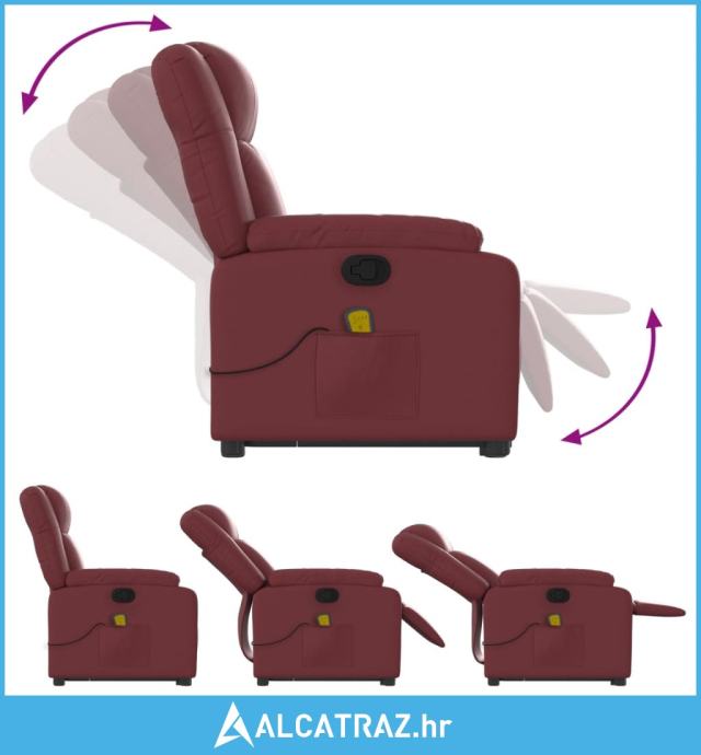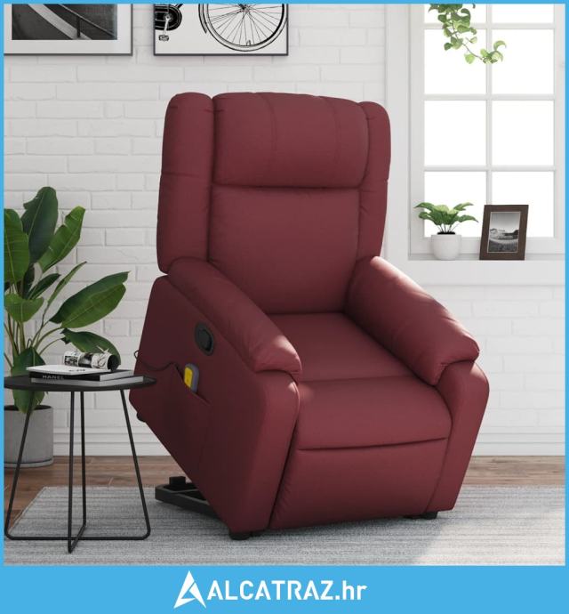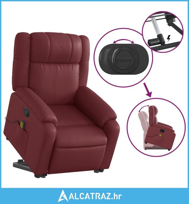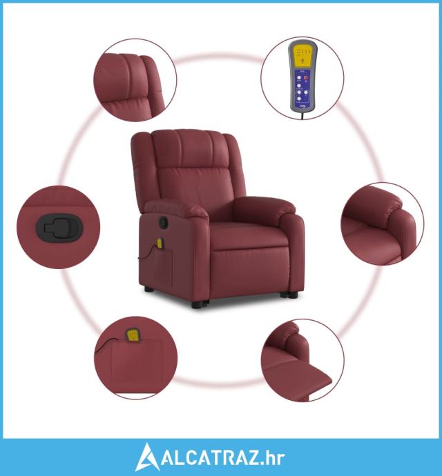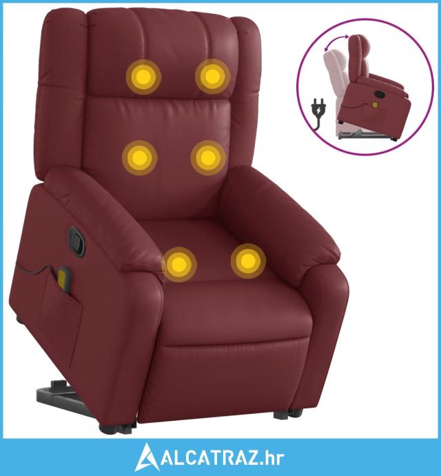 Masažni naslonjač na podizanje od umjetne kože crvena boja vina - NOVO
