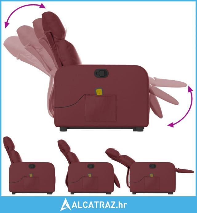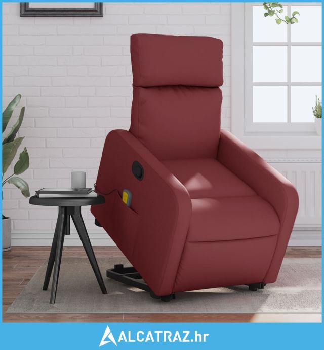 Masažni naslonjač na podizanje od umjetne kože crvena boja vina - NOVO