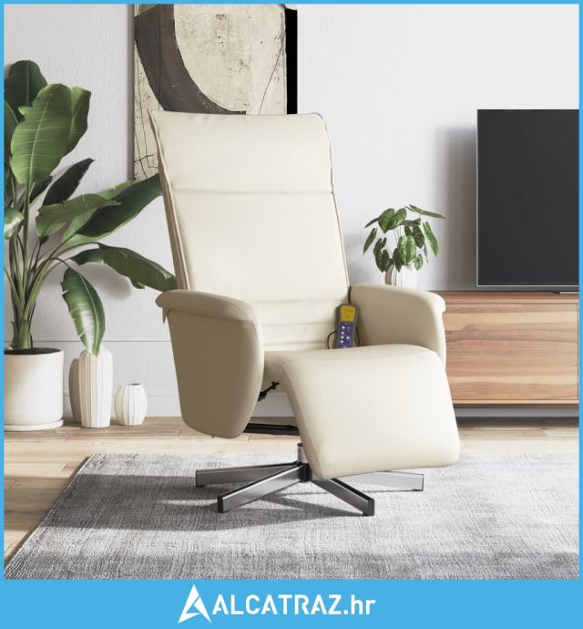Masažni naslonjač od umjetne kože s osloncem za noge krem - NOVO