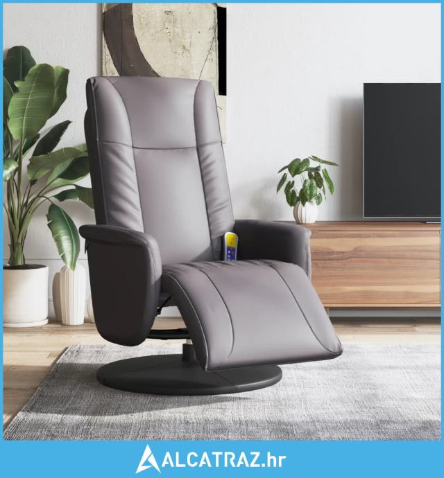 Masažni naslonjač od umjetne kože s osloncem za noge sivi - NOVO