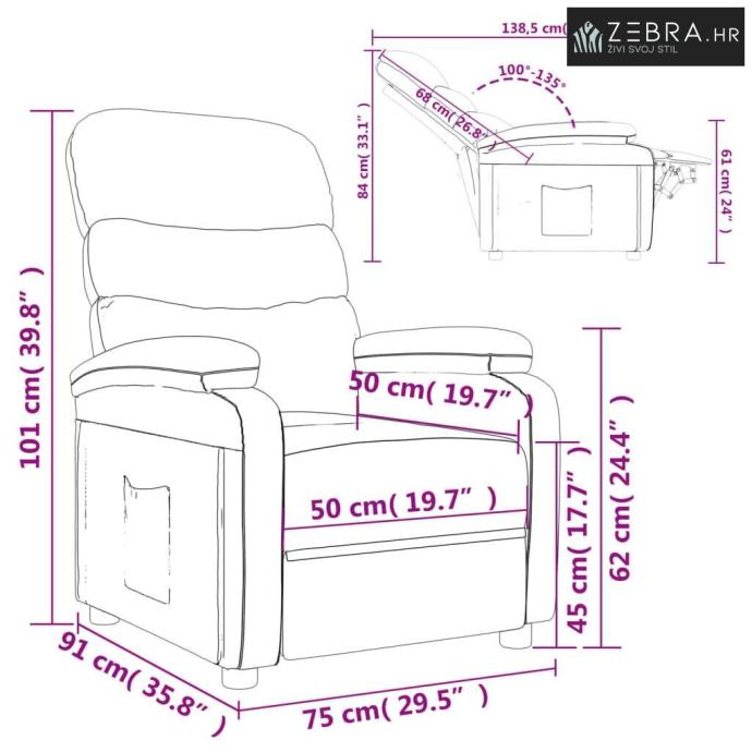 Dimenzije kod ležanja: 75 x 138,5 x 84 cm (Š x D x V)