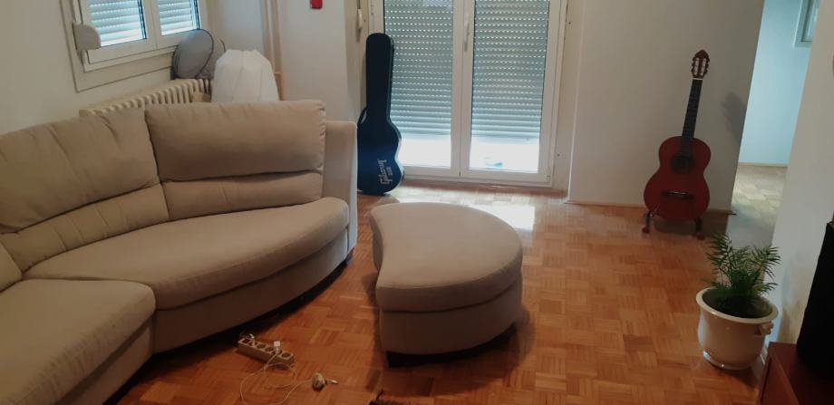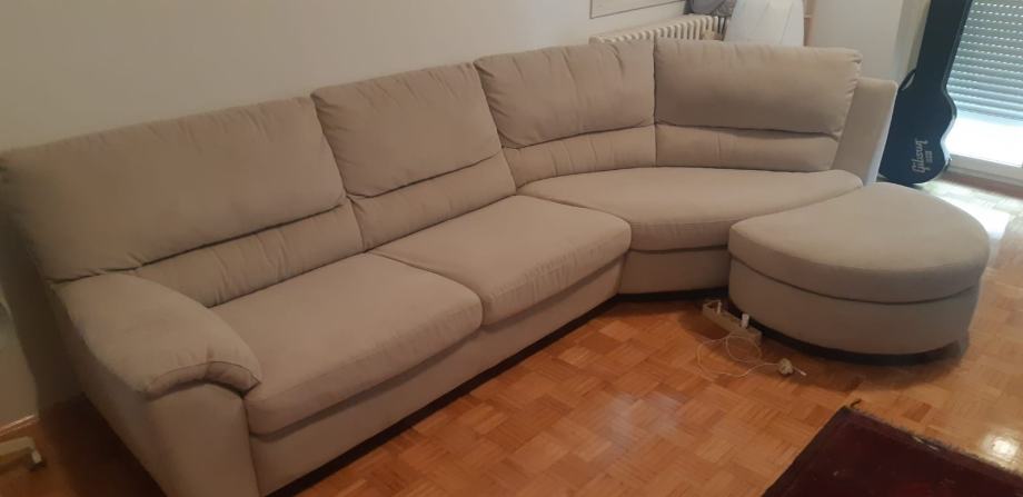 Trosjed sa tabureom dobre kvalitete u odličnom stanju, dužina kauča bez taburea 3,10 m.