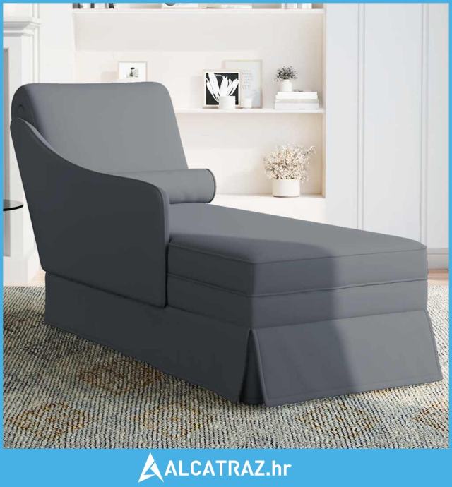 Počivaljka baršun s valjkastim jastukom&rukonaslonom tamnosiva - N