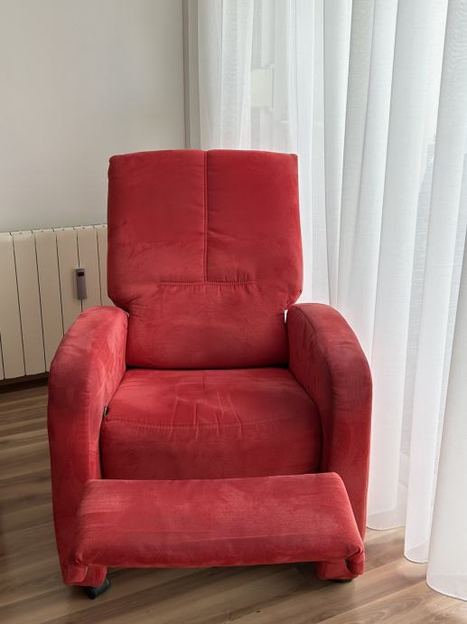 Prodajem relax fotelju, crvena boja, dobro očuvana, dimenzije visina sjedala 43cm, ukupna visina 103cm, širina 70cm