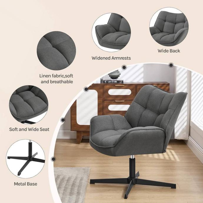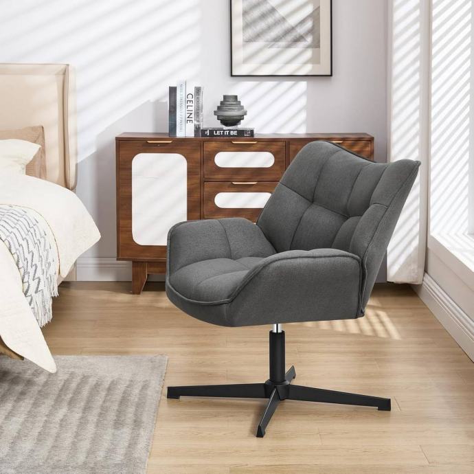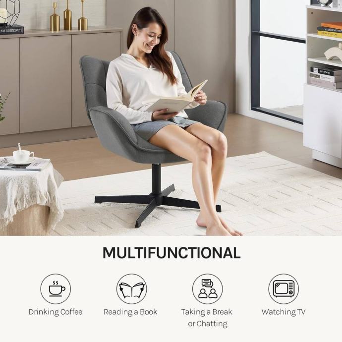Relaks naslonjač, 360° rotirajući, tapeciran, lounge stolica od lana