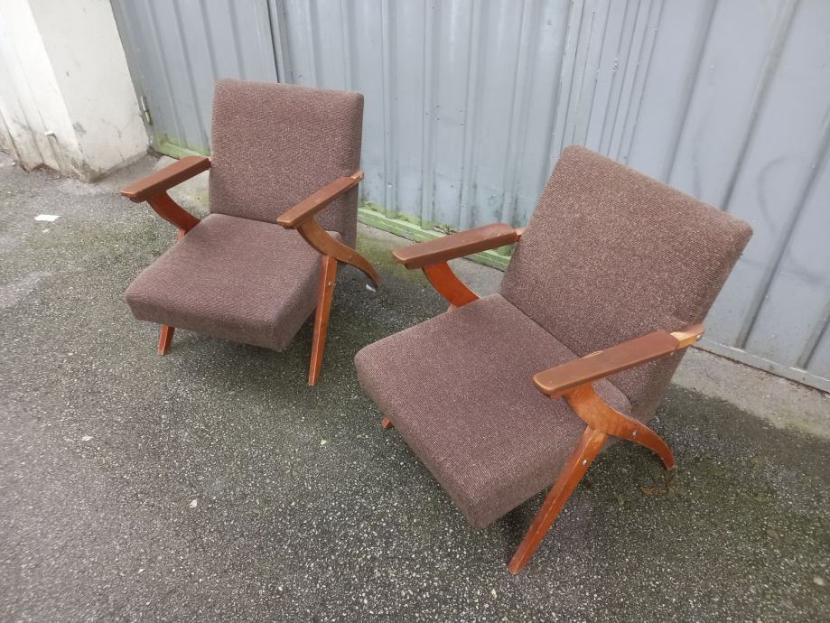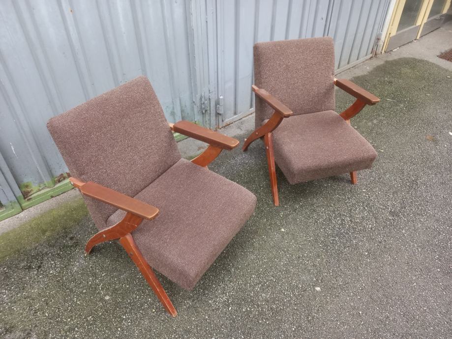 Jako udobna. Rukohvati od punog drveta, s ogrebotinama vidljivima na slikama.