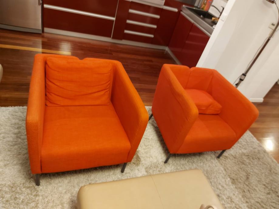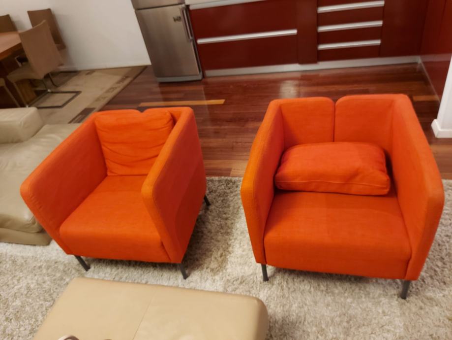 Prodajem 2 fotelje u crvenkasto narančastom tonu,