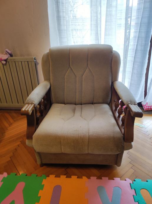 Prodajem staru udobnu fotelju od svoje bake. Uredno je skladištena u grijanom prostoru i nema primjetne mrlje niti oštećenja.