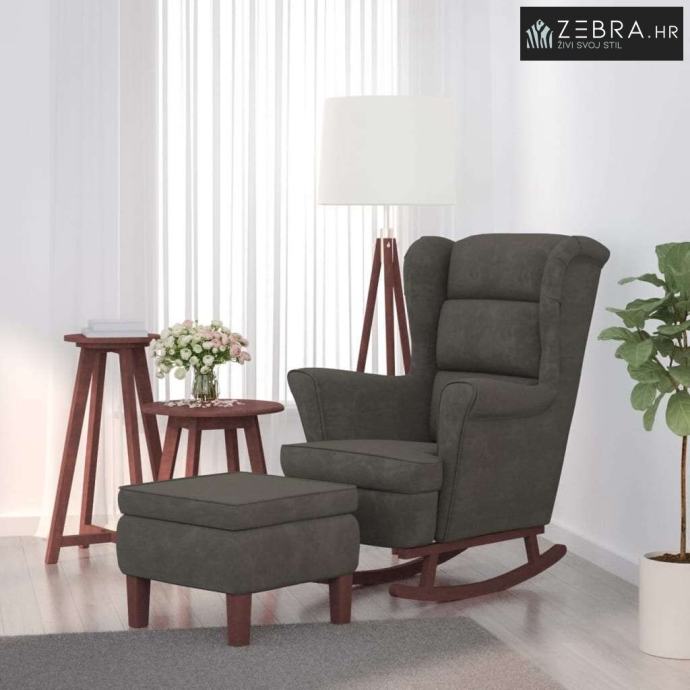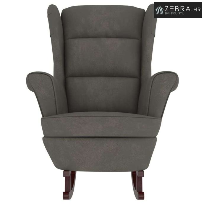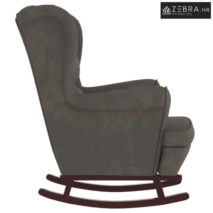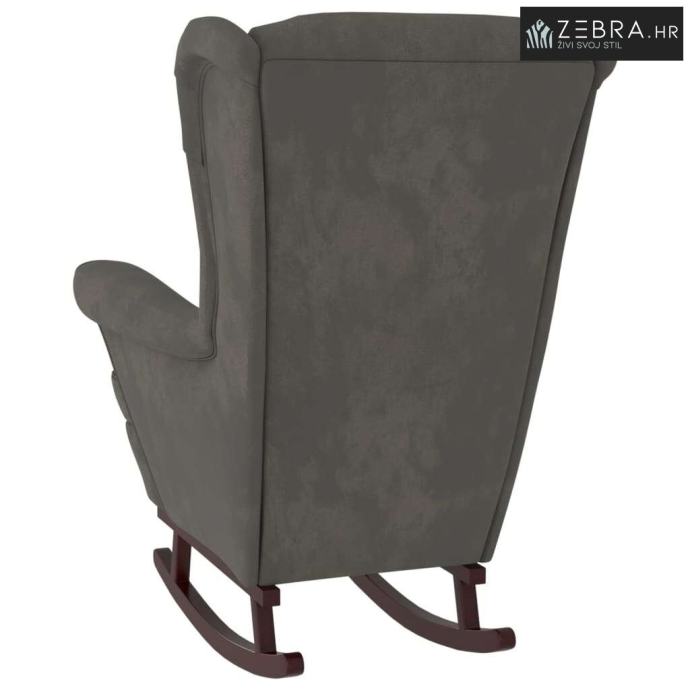 Ljuljačka stolica s naslonom, tamno sivi baršun i puno drvo - Tamno si