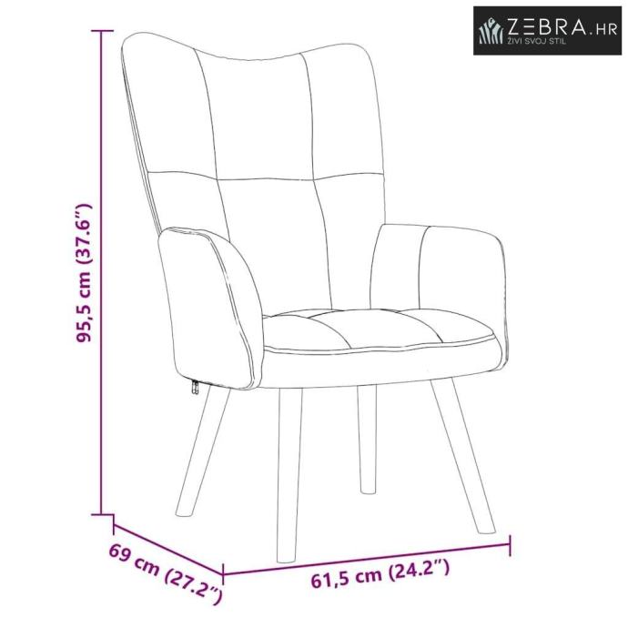 Njega i održavanje: Uvijek drži ovu fotelju u vrhunskom stanju redovitim čišćenjem prašine mekom, suhom krpom. Izbjegavaj jake kemikalije koje bi mogle oštetiti baršunastu teksturu.