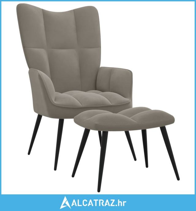 Stolica za opuštanje s osloncem za noge svjetlosiva baršunasta - NOVO