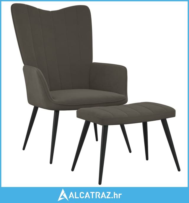 Stolica za opuštanje s osloncem za noge tamnosiva baršunasta - NOVO