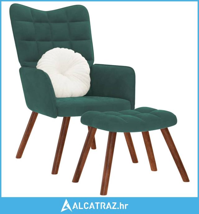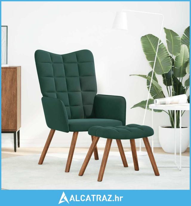 Stolica za opuštanje s osloncem za noge tamnozelena baršunasta - NOVO