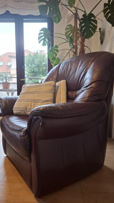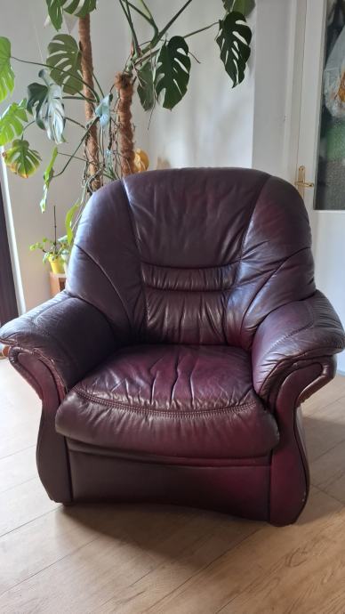 Kvalitetna bordo fotelja od kože, izuzetno udobna i robusna, idealna za trenutke čitanja i opuštanja.