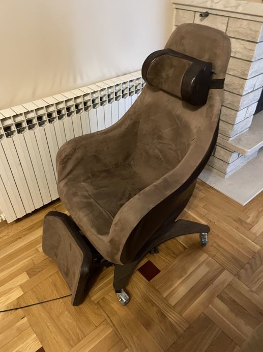 Ovaj naslonjač napravljen je od tkanine (kombinacija kože i rušene kože), iverice i željeznog okvira, ispunjen pjenom i pamukom, zbog čega je stabilan i mekan za sjedenje. Uz to, naslon se može podesiti prema natrag, a oslonac za noge prema gore, što vam omogućuje da udobno legnete.