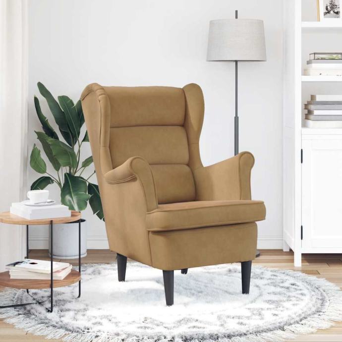 Fotelja je presvučena baršunom, zbog čega je mekana na dodir i izdržljiva. Okvir od šperploče osigurava stabilnost. Podstavljeni naslon za leđa i sjedalo također vam nude udobno sjedenje.