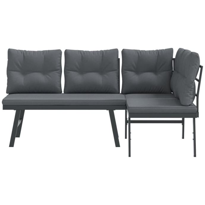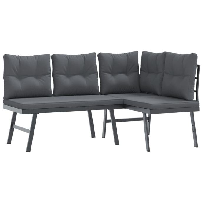 vidaXL Vrtne klupe s jastucima 2 kom crne od čelika obloženog (400810)