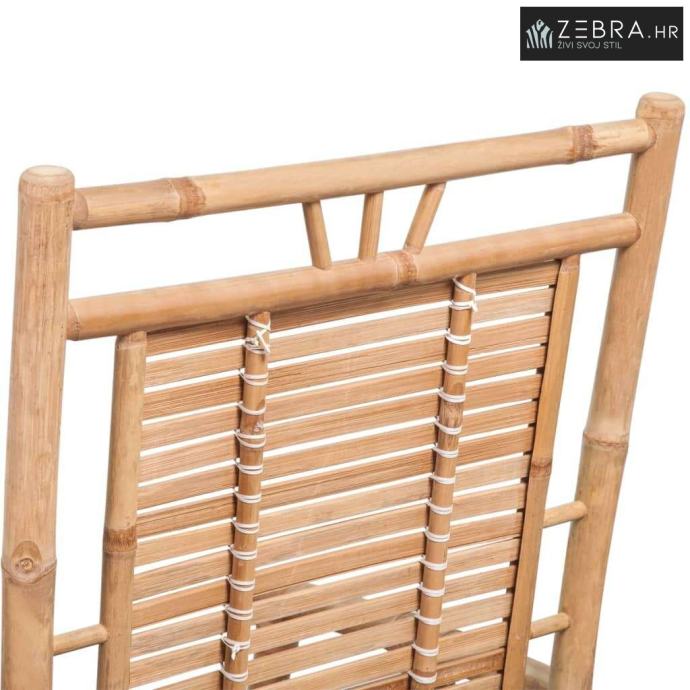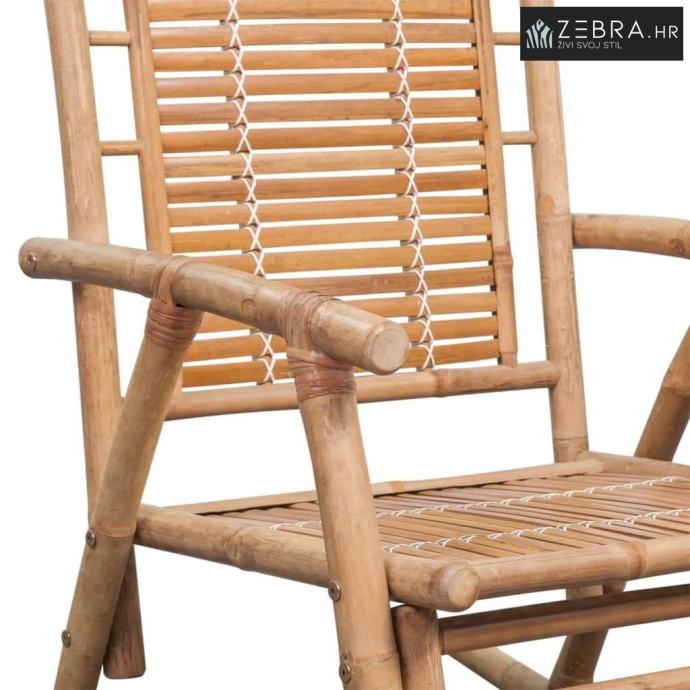 Izrađena od čvrstog bambusa, ova stolica se lako čisti,čvrsta je i izdržljiva. Budući da je na otporna na UV zrake i vremenske utjecaje, stolica od bambusa ,može se koristiti u zatvorenom prostoru, kao i na otvorenom. Stolica za ljuljanje će biti nevjerojatan dodatak svakom životnom prostoru.