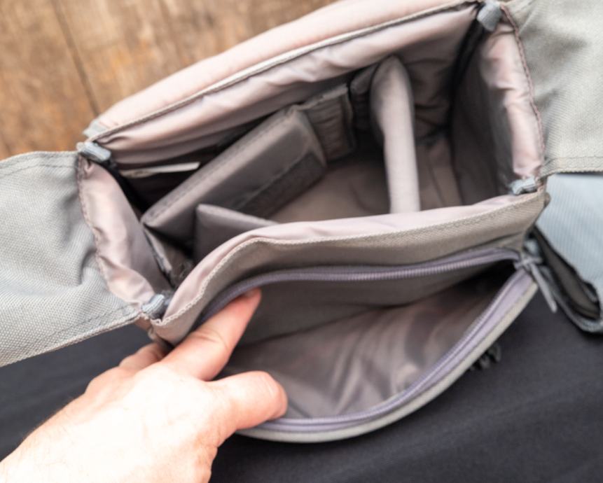 S prednje strane ima pretinac za sitni pribor, baterije koji se zatrvara sa patentnim zatvaračem.