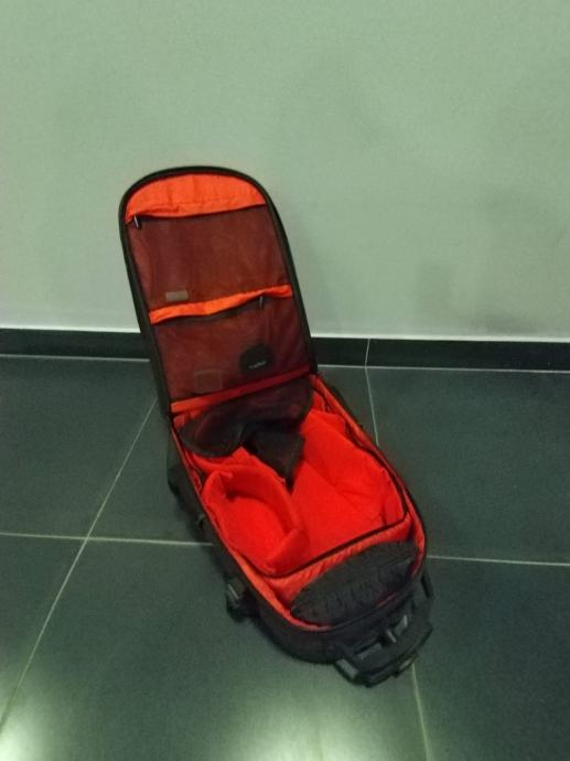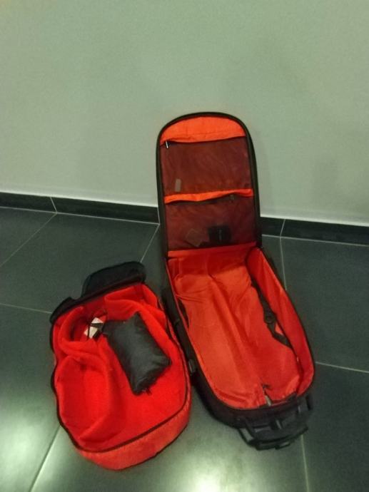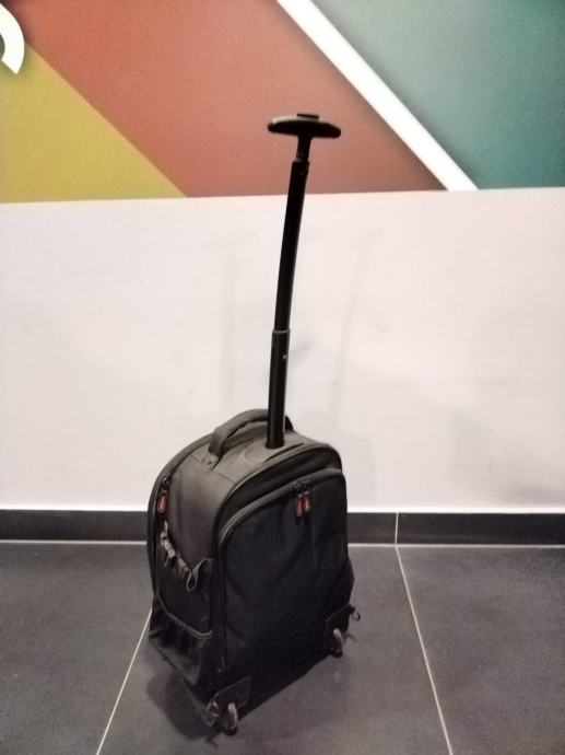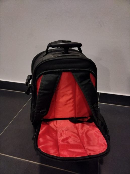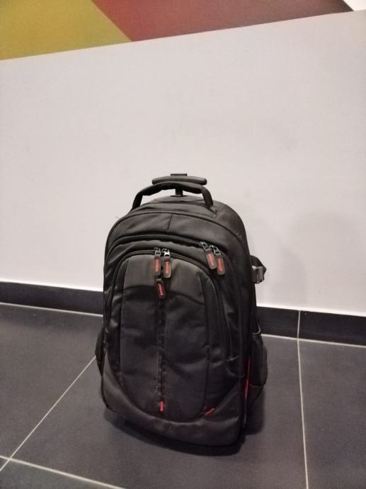 6 pretinaca, 2 džepa sa strane, kotačići, može biti ruksak, pregrade, navlaka za kišu