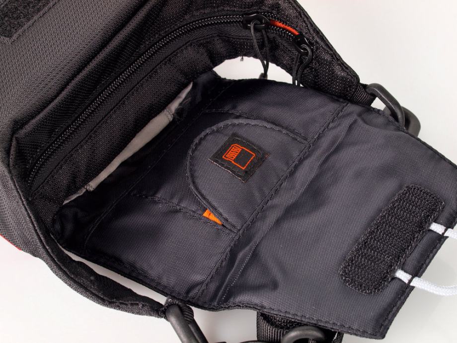 The rugged hook and loop opening is extra wide to allow you to easily remove and return your gear. The brushed tricot lining will be gentle on the finish of your equipment and, speaking of finishes, Lowepro has also included a handy built-in microfiber cleaning cloth for those emergency smudges on your lens. Additionally, you’ll find a neat little built-in memory card pocket on the inside flap. The interior is accessed via a dual zipper.