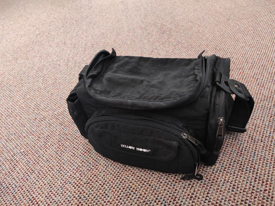 Foto torba YELLOW MOON ,dimenzije:32x 21x20 cm.5 unutarnjih pretinaca,i 4 vanjska.Napravljeno od izdržljivog materijala.