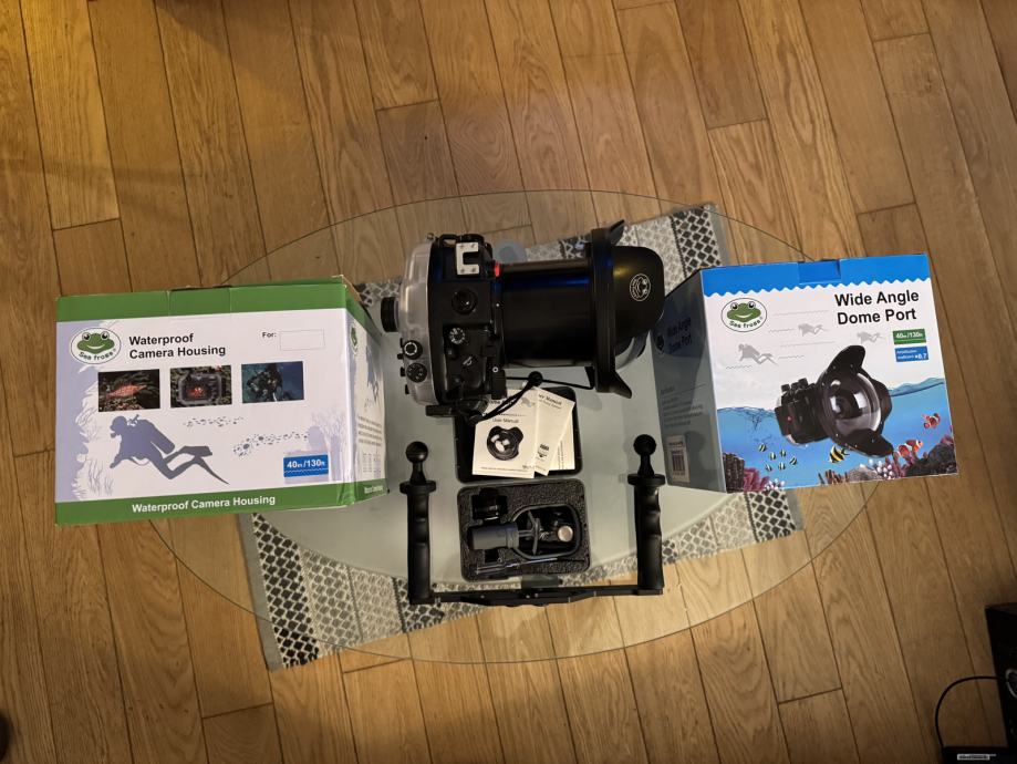 Prodajem podvodno kučište marke Seafrog za fotoaparat Sony a7 II, certificirano do 40m dubine. Kučište je kao novo, jednom korišteno, i dolazi sa dodatnim dome portom i extenderom za duže objektive (širokokutni npr.) i vakuum pumpicom za provjeru vodonepropusnosti kučišta prije zarona. Također, u pakiranju je i držač sa dvije ručke na koje je moguće spojiti držače za bliceve.