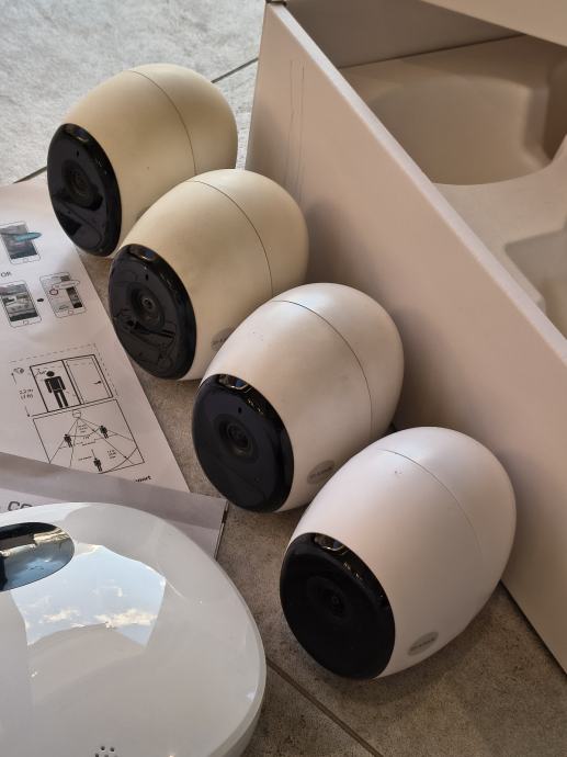 Uključeni pribor: HUB upravljačka jedinica s ugrađenom sirenom / 4 magnetska nosača, 2 punjača za kameru, punjač za HUB upravljačku jedinicu, 4 nosača za montažu (kuglasti tip)