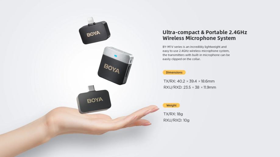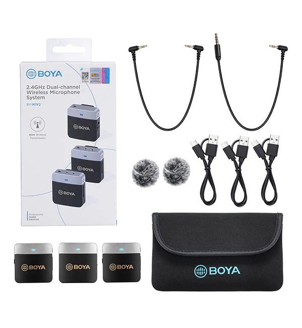 Bežični mikrofon za kameru: BOYA BY-M1V2 je nevjerojatno lagan, ultrakompaktan i jednostavan za korištenje 2.4GHz bežični mikrofonski sustav za do 3 osobe. BY-M1V2 uključuje 2 odašiljača i 1 prijemnik te pruža izvrsnu kvalitetu zvuka za pametne telefone, tablete, DSLR-ove i kamkordere
