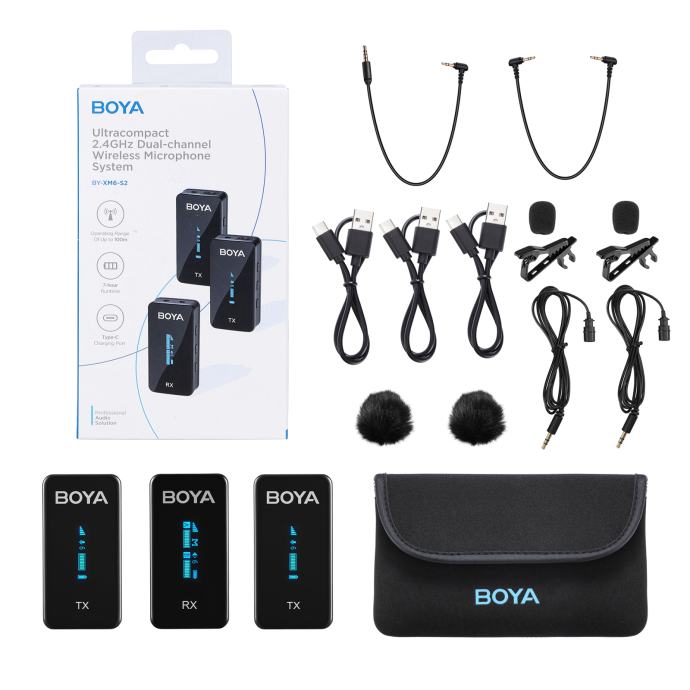 Boya XM6-S2, Iznimno kompaktan bežični mikrofon 2TX+1RX, bez chargbox