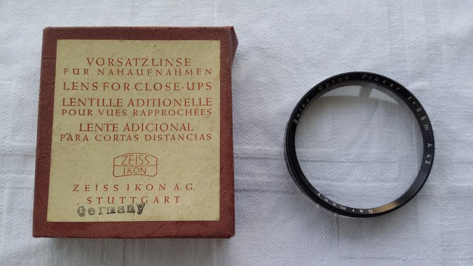 Prodajem vintage Carl Zeiss Opton Proxar leću A 42, koja služi za makro snimanja (42 mm, F= 0,5 m).