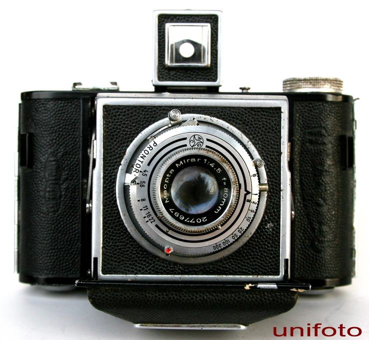 danas poznatije kao MEOPTA. srednjeg formata filma 6 x 6 ( 120 ) i compur zatvaračem Prontor. Sve u vrlo dobrom stanju i u