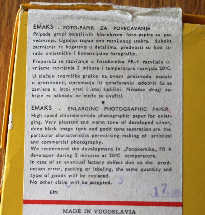 Kutija sa 100 komada Fotokemika Emaks fotopapira.
