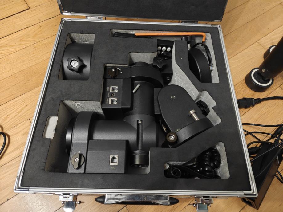 Clamp je zamjenjen sa ADM verzijom (puno duži i prihvaća losmandy). Na stativ je dodan pier (duži). Isto tako u kompletu dolazi još jedan dodatni uteg. Funkcionira bez problema. Stepper motori su malo glasniji u mirovanju, al ne utječe na performanse. Remeni u dobrom stanju. Dolazi sa aluminijskim kovčegom.