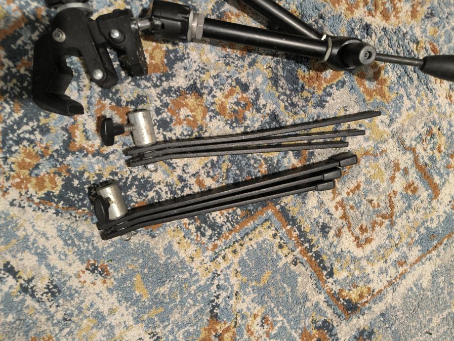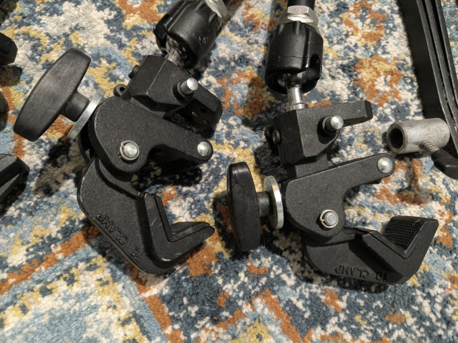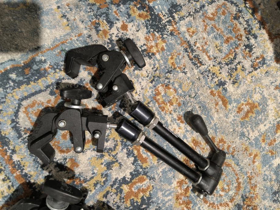 Prodajem 2 Manfrotto Magic Arm u kompletu sa 4 Manfrotto Super Clamp (model 035) glave i s dva Backlite sklopiva stativa, bez cijevi. Na jednom stativu nedostaju gumeni nastavci na krajevima nogu.