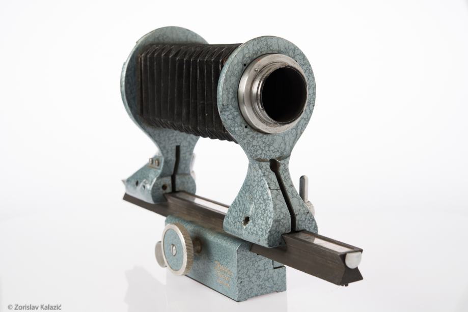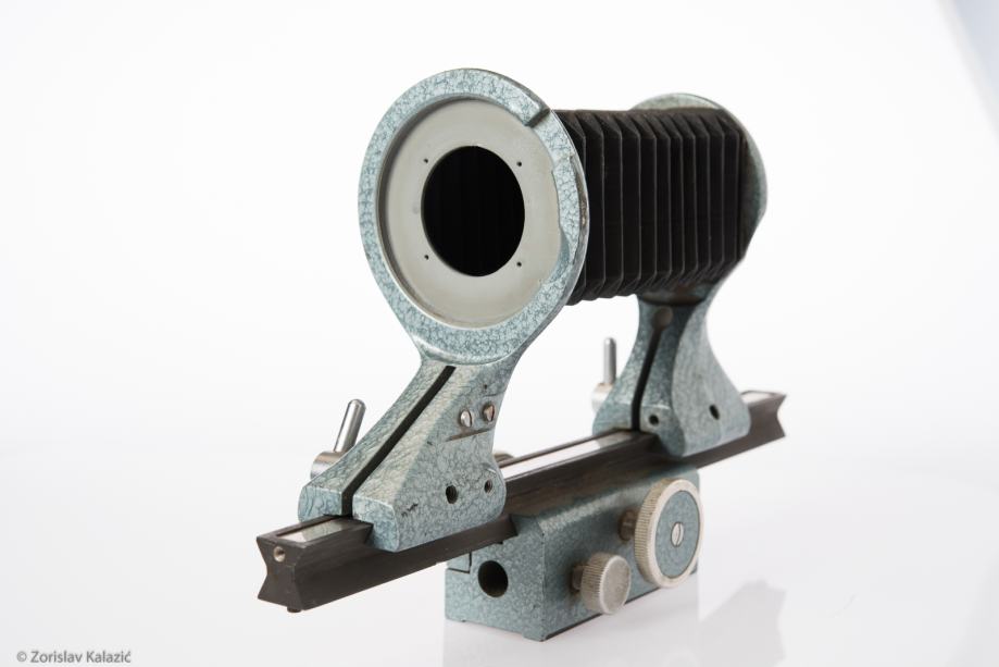 Mijeh za makro snimanje sa dodatnom šinom za razvlačenje mijeha i vijcima za pritezanje i pričvršćivanje u željeni položaj.